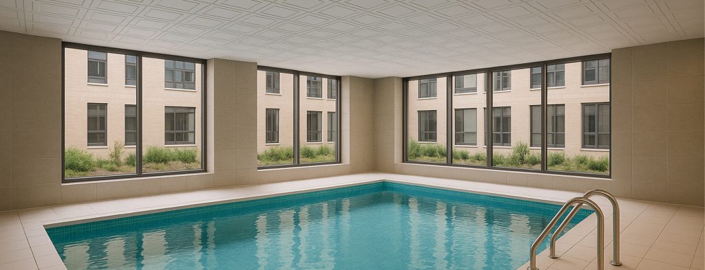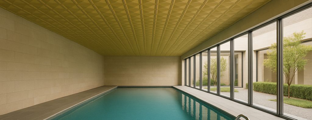 مکانهای مرطوب: حمامها، سرویسهای بهداشتی و استخرها که نیاز به دیوارپوشها و سقفهایی مقاوم دارند.